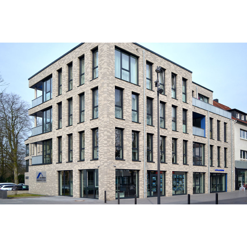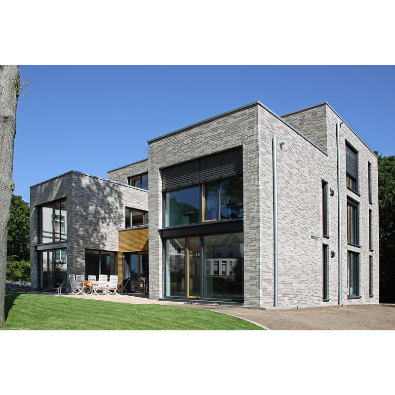 Клинкерный кирпич высокого качества - RöbenPREMIUM. Его лицо с тонкими чертами остайотся белым в течение длительного времени, независимо от погоды. Секрет уникальности цвета заключается в выборе глины, состоящий главным образом из кварца, каолинита (минерал из которого производится фарфор) и иллитом, запеченный по специальному технологическому процессу. Стильные белые фасады относятся к архитектуре южной Европы, он долгое  врем является постоянной по цвету за счет высокой прочности (класс> 100 Н / мм²). в результате чего меньше загрязняется.